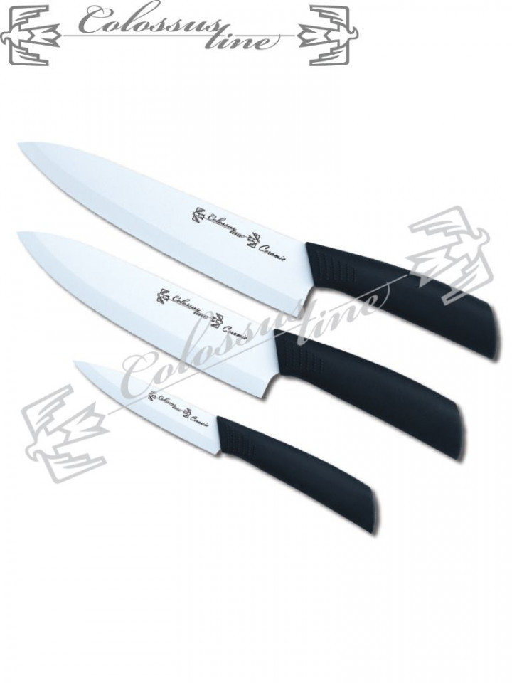 COLOSSUS LINE Set keramičkih noževa CL-34 donosi savršenu kombinaciju vrhunske oštrine i modernog dizajna. Oštrice su izrađene u potpunosti od kvalitetne keramike, koja obezbeđuje dugotrajan rez bez gubljenja oštrine. Gumene, ergonomske drške pružaju udobno i sigurno rukovanje.