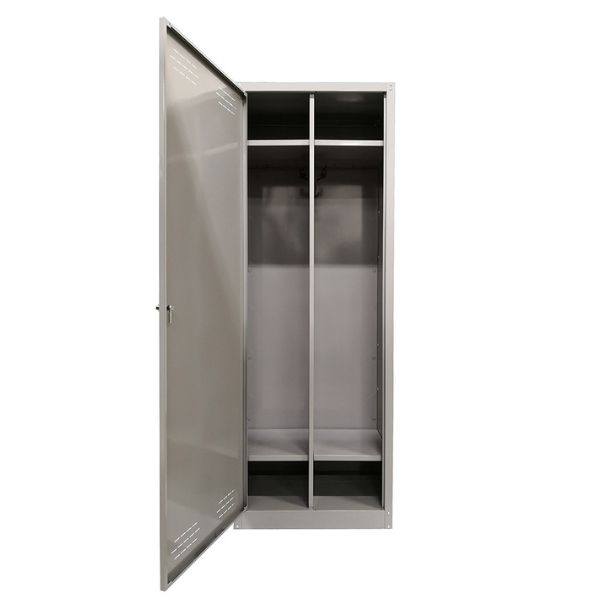 Jednoblokovni ormar, opremljen gornjim otvorima za ventilaciju i donja ručka koja se može zaključati i dupla prljava/čista pregrada. Sistem za zaključavanje i montažu vijaka daje stabilnost.